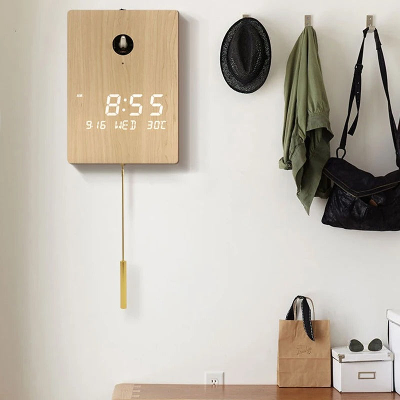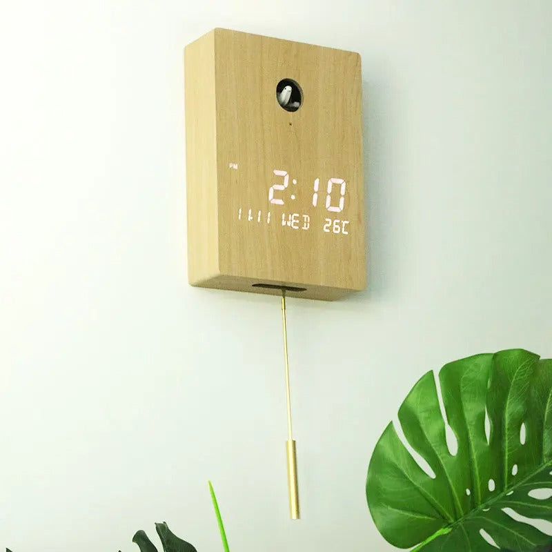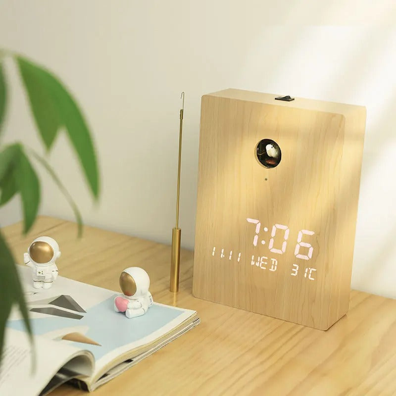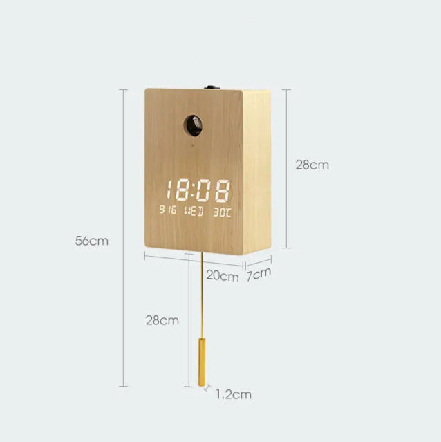 Avec la Coucou Horloge Design, vous profitez d’une technologie de pointe qui va bien au-delà de la simple indication de l’heure. Cette horloge est équipée d’un affichage LED qui vous informe simultanément sur le jour et la température ambiante, faisant d’elle un outil pratique au quotidien.