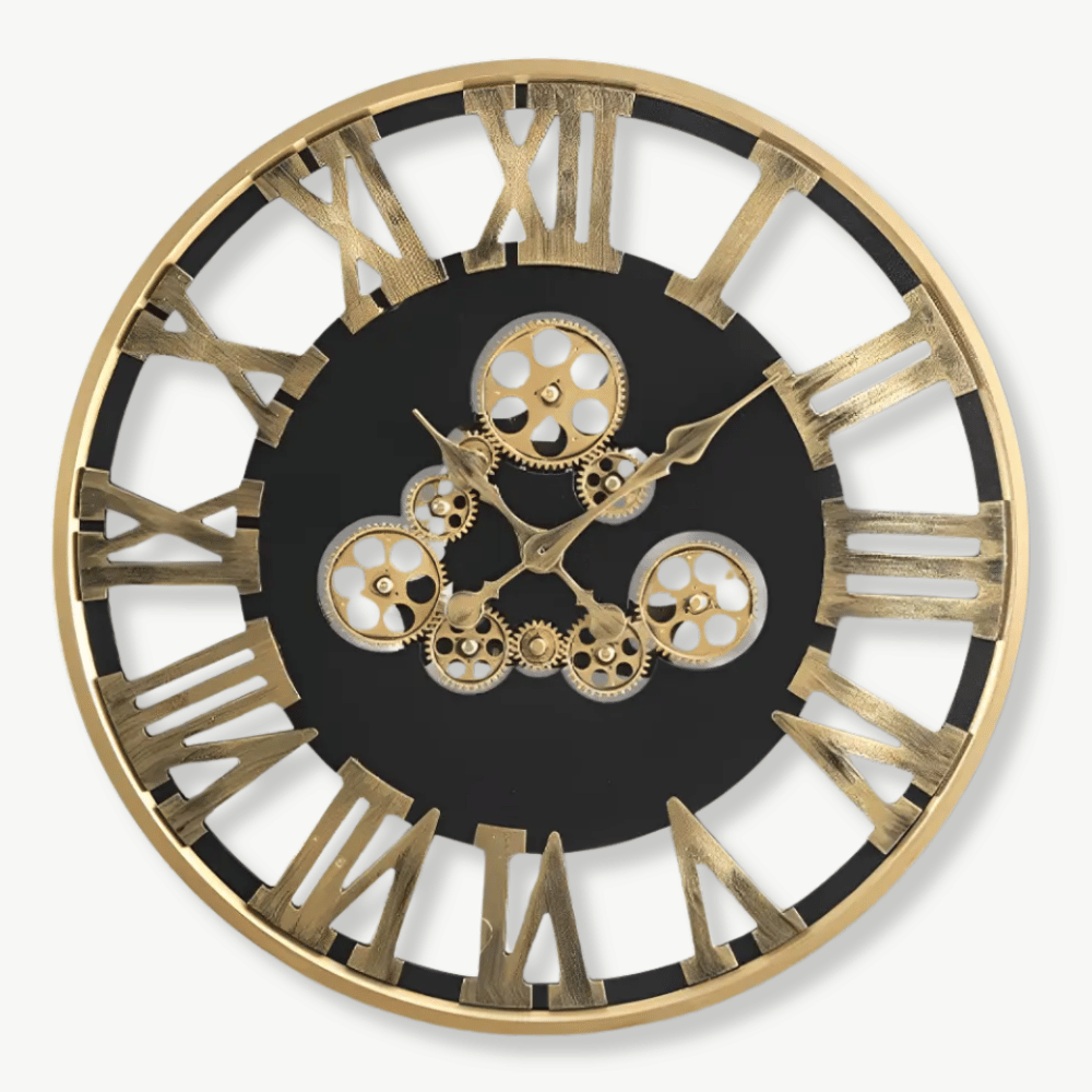 Performance et précision de l’Horloge Murale Engrenage Tournant Dorée