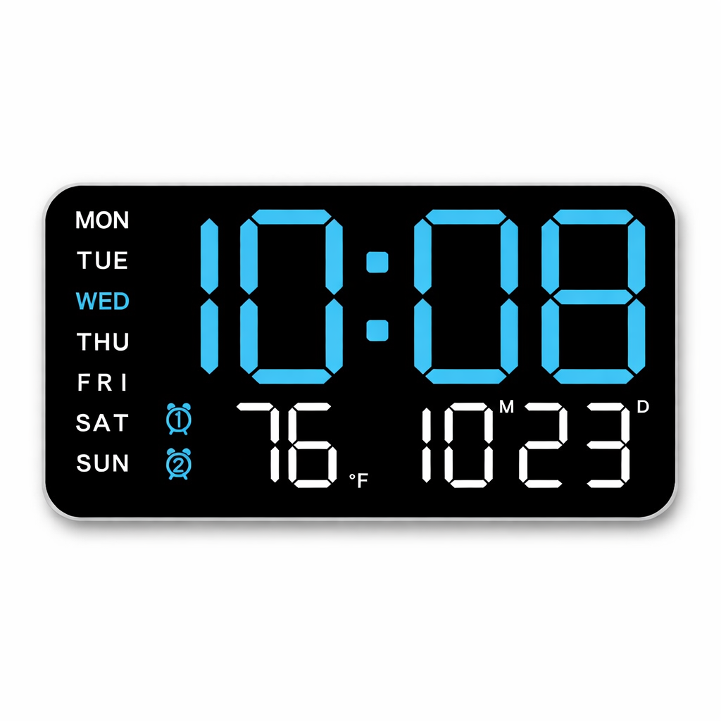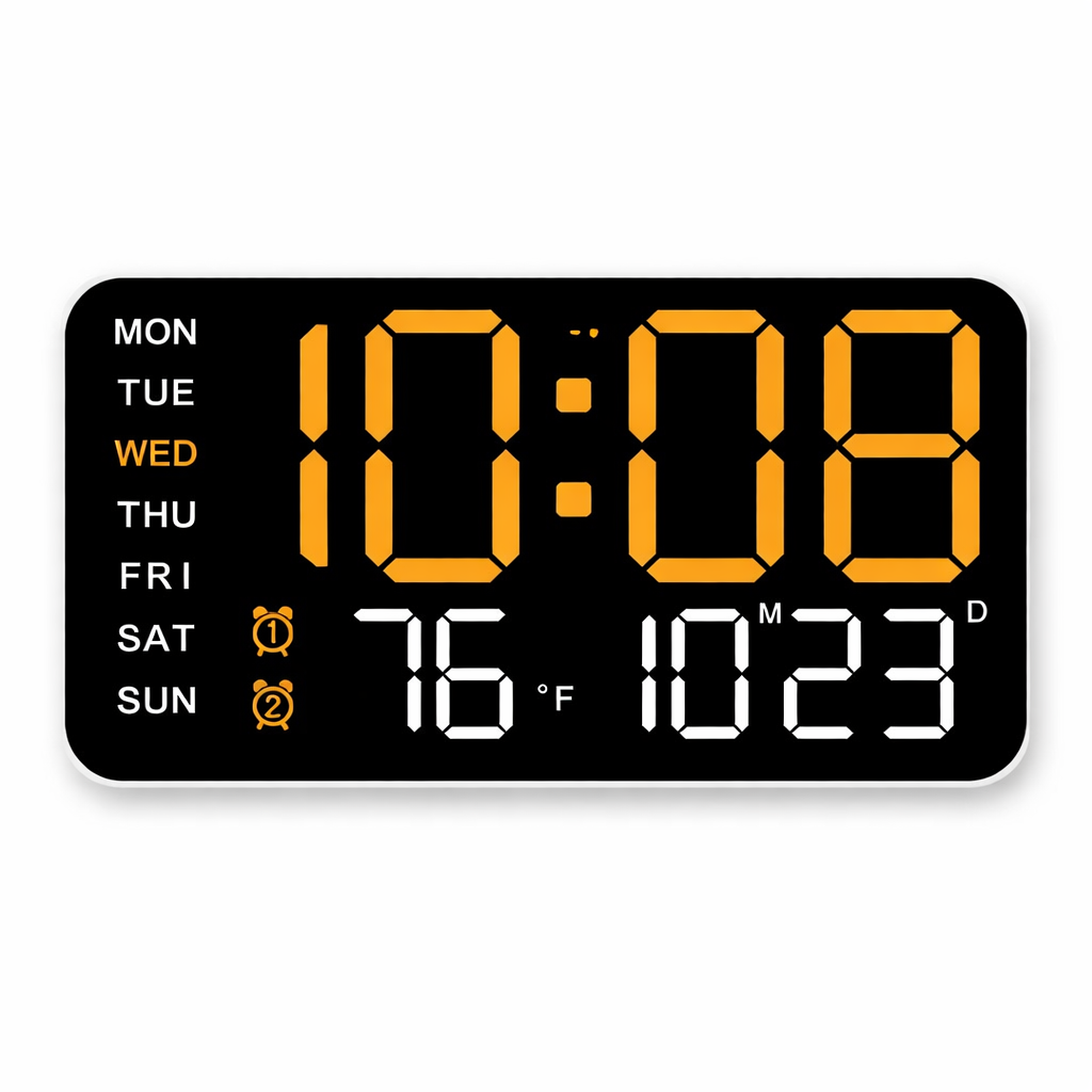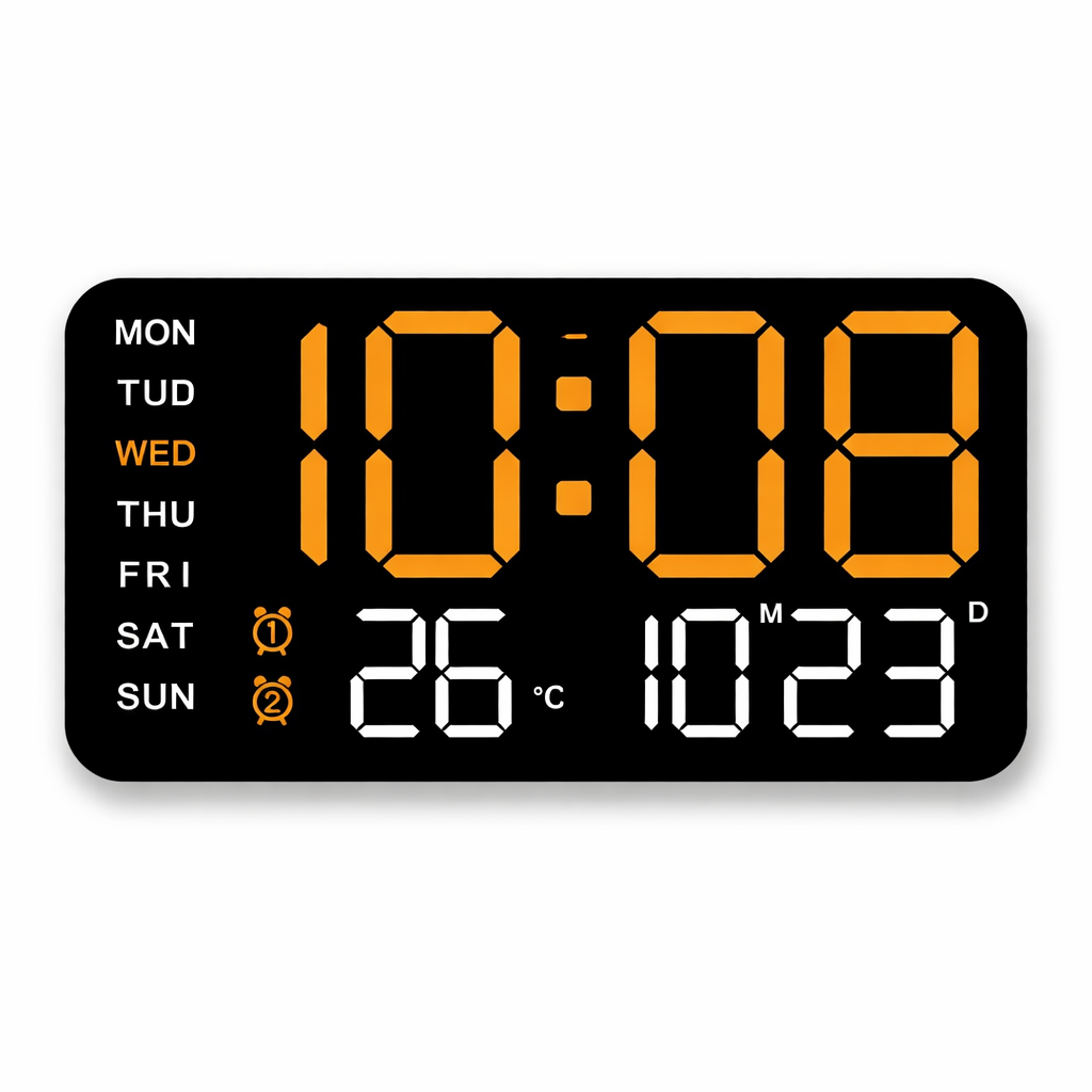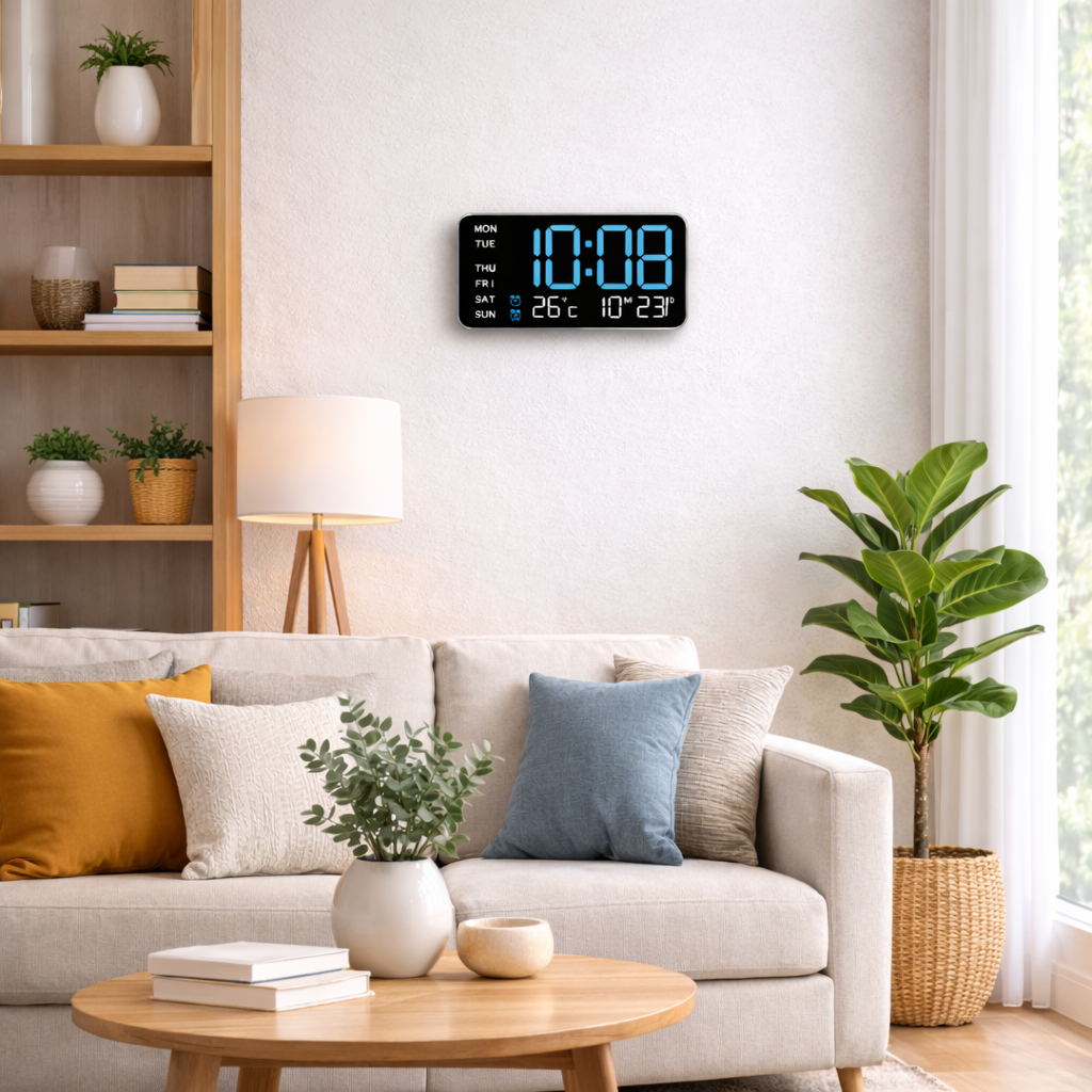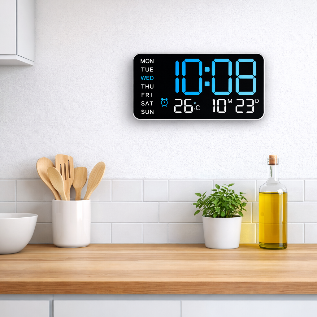 Horloge murale numérique LED pour cuisine – heure, date et température