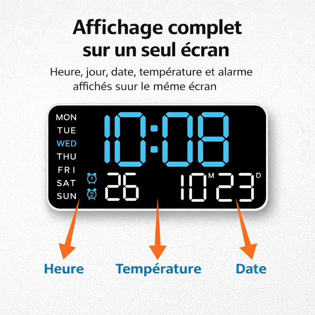 🟡 Une horloge moderne, lisible et intelligente pour votre quotidien