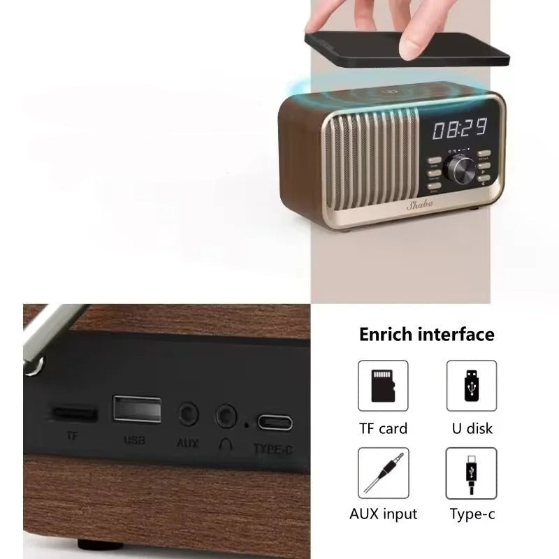 Le Radio Réveil Bois Vintage se distingue également par ses fonctionnalités pratiques, comme la recharge sans fil compatible QI. Posez simplement votre téléphone pour le recharger, éliminant ainsi le besoin de câbles encombrants. Une simplicité d’utilisation qui s’adapte à votre rythme de vie moderne tout en préservant un côté vintage.